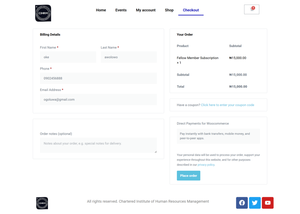 Step 2: Fill in your information and Place order