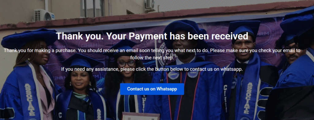 Once you have completed your payment on paystack you will be taken to this Thank you page and you will receive an email from us, giving you details of the next step.
